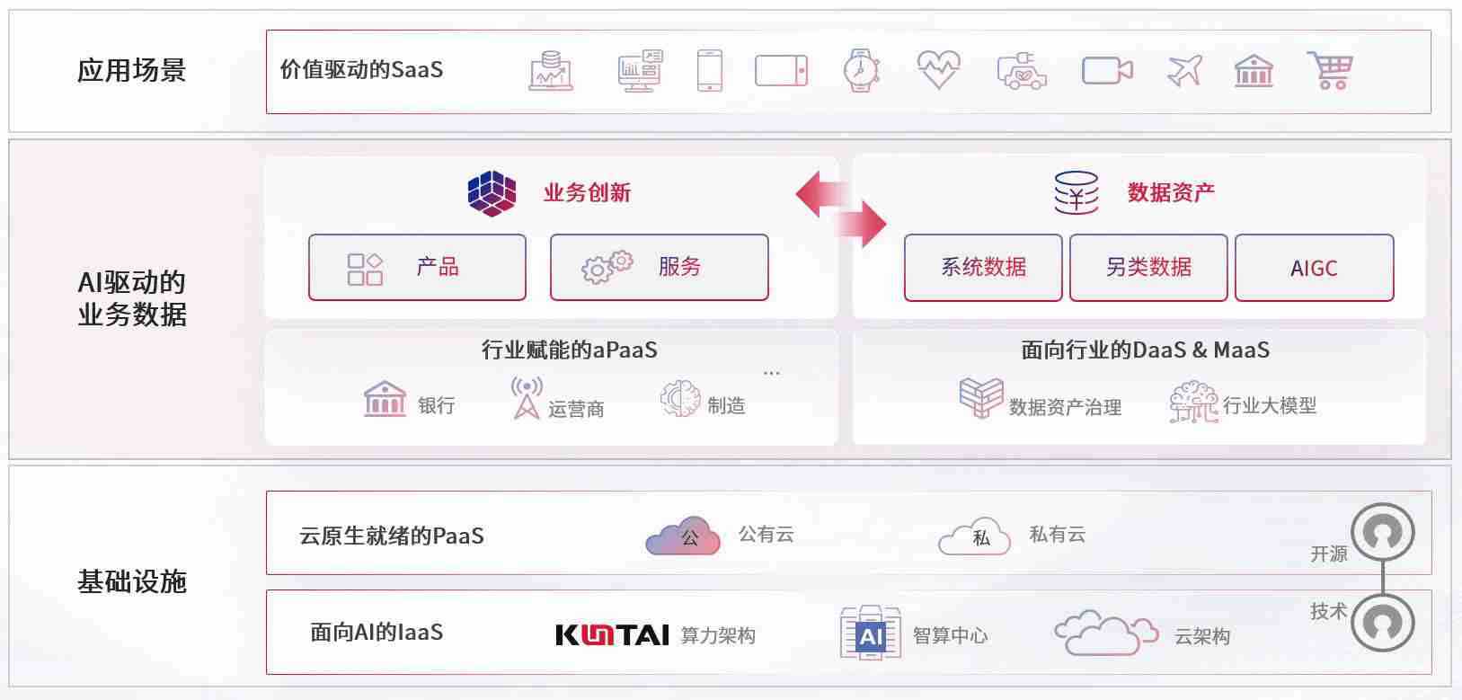 数字时代,,,围绕企业数字化转型的关键要素,,,,尊龙数码开创性的提出数云融合战略和技术体系框架,,着力在云原生、、、数字原生、、、AI原生和信创产业上架构产品和服务能力,,,为处在不同数字化转型阶段的快消零售、、、、汽车、、、金融、、、、医疗、、、政企、、教育、、、运营商等行业客户提供泛在的敏捷IT能力和融合的数据驱动能力,,构建跨界融合创新的数字业务场景和新业务模式,,助力企业级客户建立面向未来的核心能力和竞争优势,,全面推动社会的数字化、、、智能化转型升级。。。。